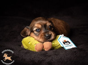 Teemo (cream brindle dapple) Instagram @doxie_teemo